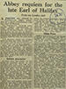Cutting from the Yorkshire Post, containing an article headed ‘Abbey requiem for the late Earl of Halifax’